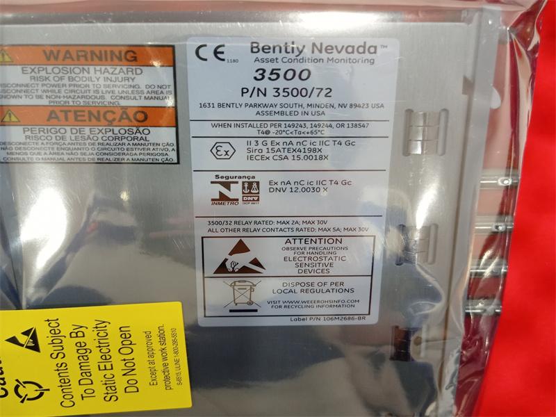 The four-channel 3500/72M Recip Rod Position Monitor accepts input from proximity transducers