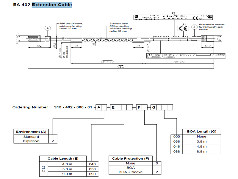 single EA 402 extension cable. Optional junction